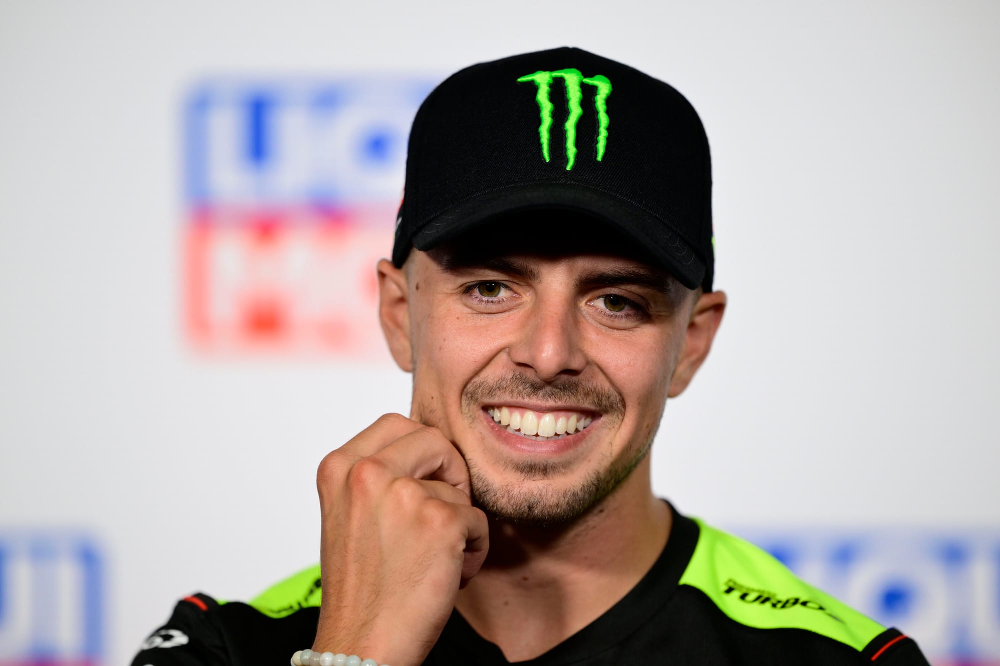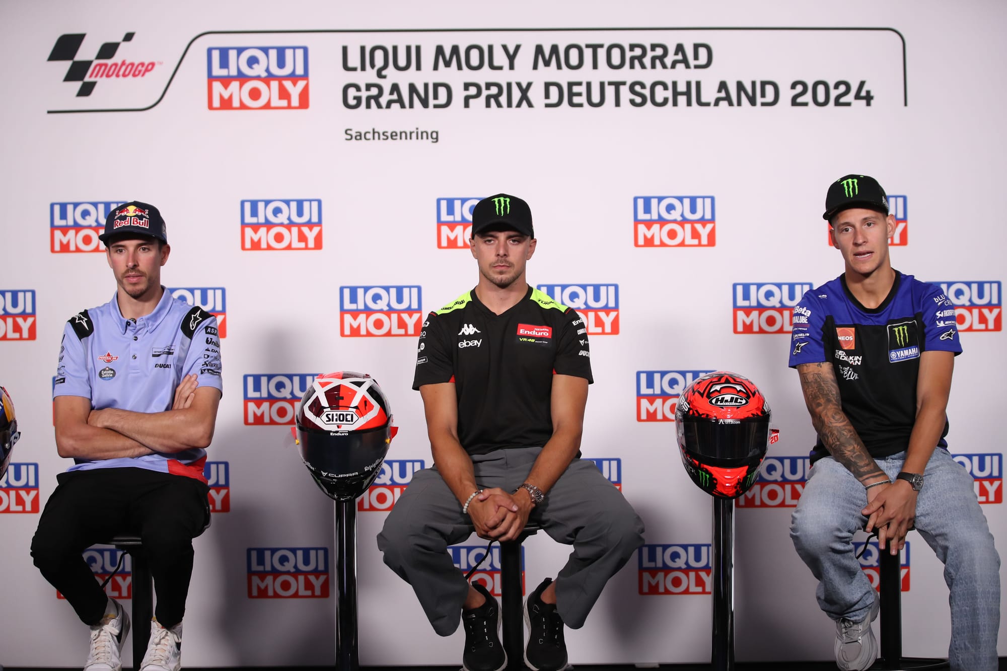 When asked who he wanted to see at Pramac in 2025, franchise Yamaha rider Quartararo - sat to the left of Di Giannantonio - simply pointed to his right and said: "This guy, on my right."