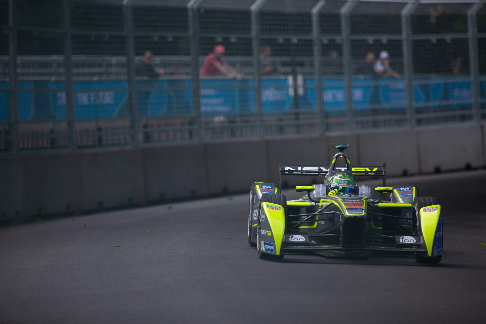 In the closing stages fifth place Buemi knew he had to clear the Mahindra of Bruno Senna for the title and he made several desperate moves but was unable to make one stick.