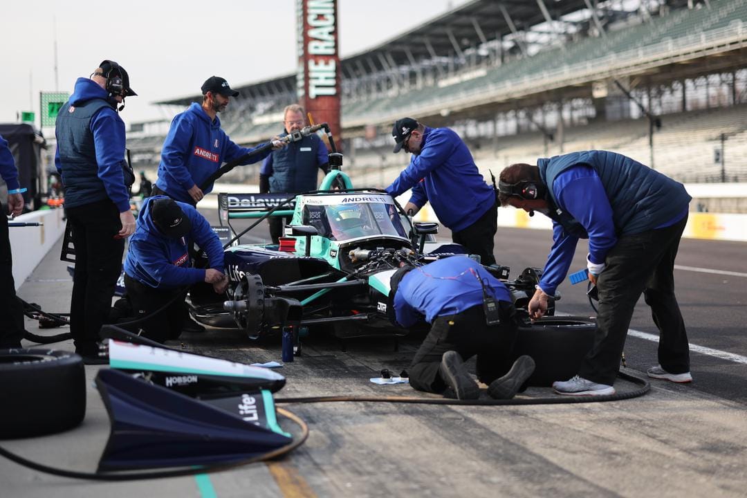 That’s because currently the IndyCar has no starter motor in it, and the AMR Safety Team has to get to the car and refire it with that thing that looks like a giant stick that goes under the rear wing in the back.
