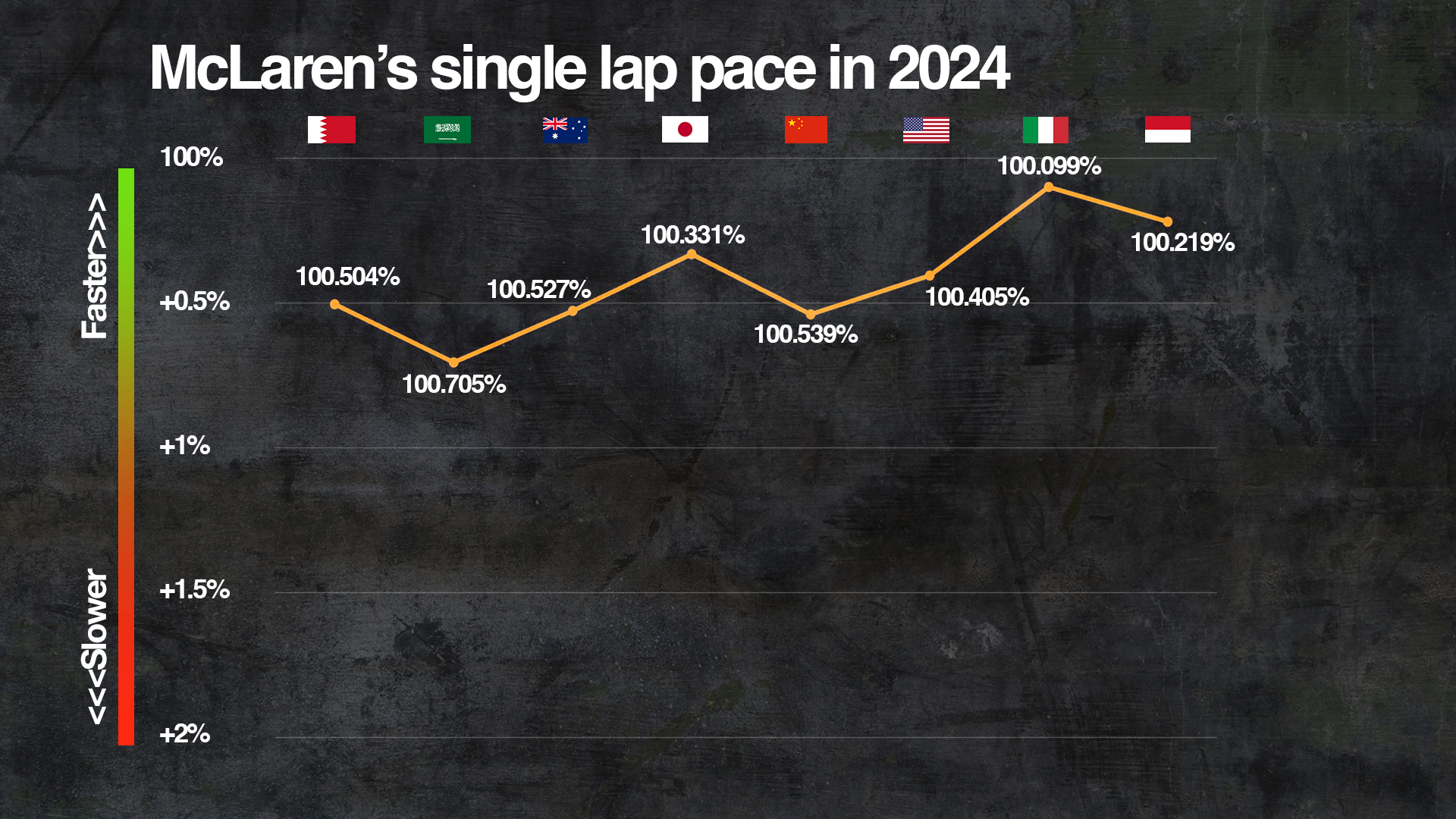 McLaren ended the season with a car that was outstanding in fast corners and struggled in slow turns, particularly long-duration ones.