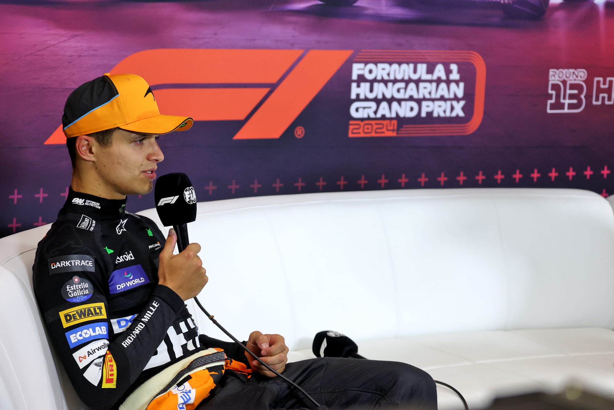 Lando Norris turned up for the Hungarian Grand Prix press conference earlier than fellow podium-finishers Lewis Hamilton and Oscar Piastri having completed his television interviews more briskly.